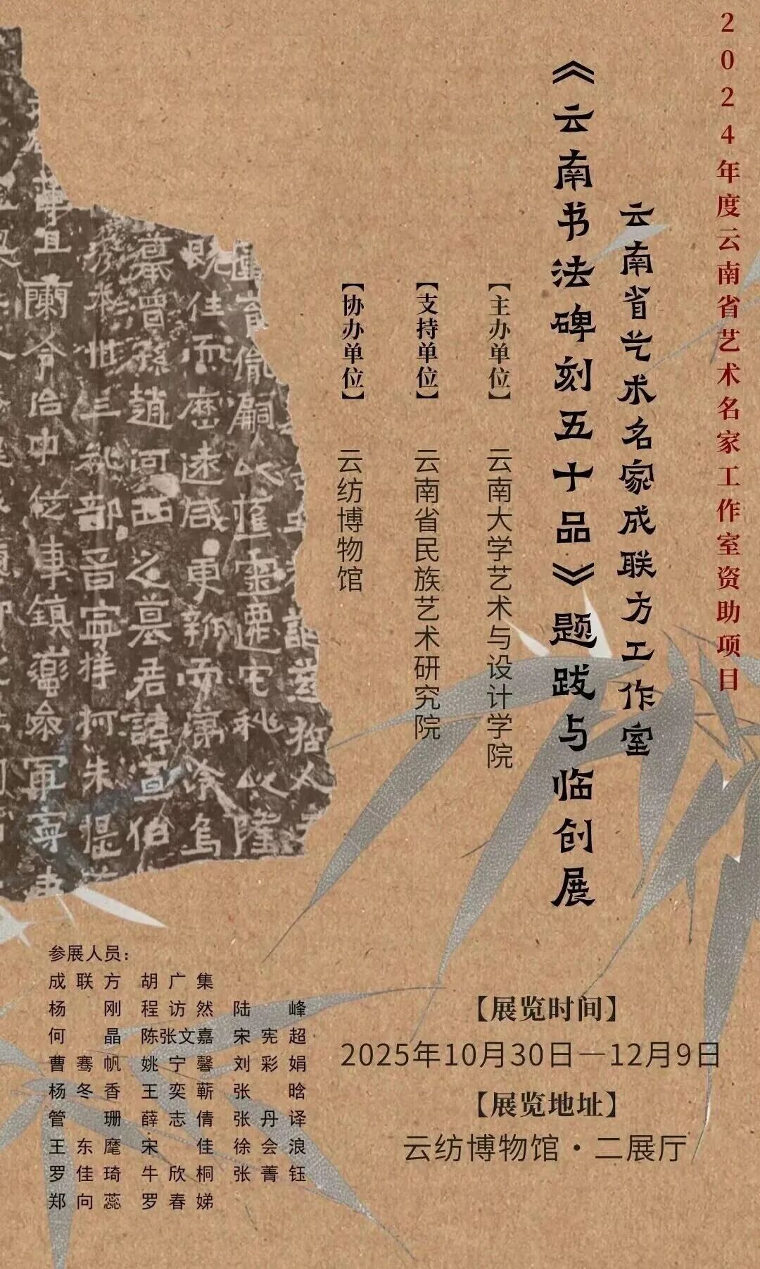展覽既是對云南書法史的梳理與展示,也是對傳統(tǒng)文化碑刻的活化與創(chuàng)新,愿觀者能于此間讀懂碑刻中的滇云故事,感受中華文化在邊疆的生生不息,體味筆墨中的文化傳承,共赴一場跨越千年的藝術之約。