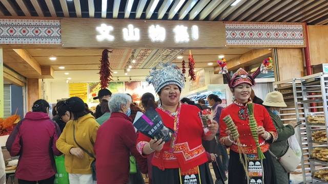 現(xiàn)在在昆明的篆新農(nóng)貿(mào)市場,云南“文山物集”今天開張了。市民們在這里就能采購到文山的有名的土特產(chǎn),米粒雪白透清的八寶貢米,煮出飯來軟糯油亮,腌制的各種辣味香腸,滿足了不同顧客的口味需求。現(xiàn)烤的新鮮面包撲鼻誘人,還沒有出鍋的牛肉餅香氣已經(jīng)吸引了眾多顧客的光顧,既有文山特色的丘北辣椒,馬關草果都讓市民們紛紛采購。文山物集的開張,滿足了昆明市民不用走出市區(qū)就能采購到心儀的文山土特產(chǎn)的需求。