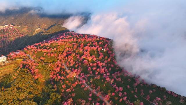 無量山櫻花谷:冬月里的春日宴,當北國裹著霜雪,滇西的無量山已捧出一整個春天。茶壟如碧毯鋪展,冬櫻盛開