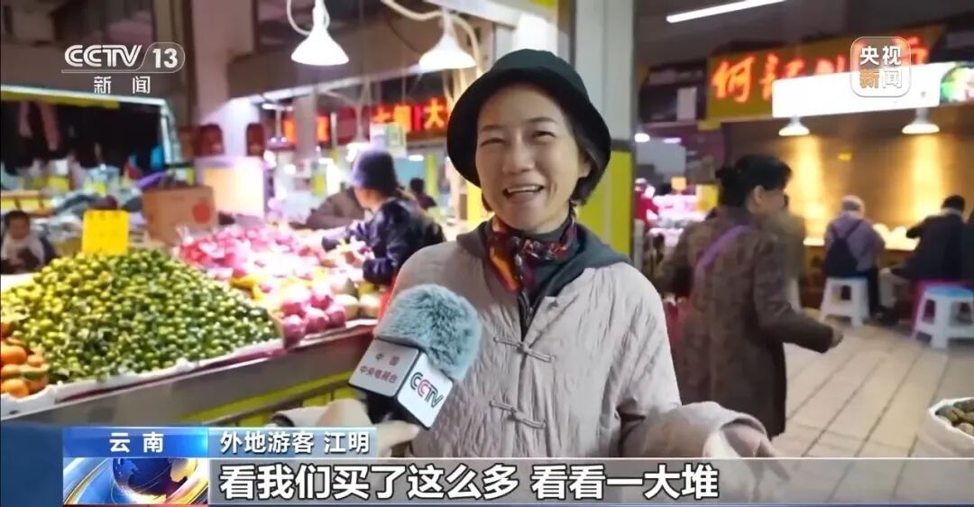 外地游客 江明:看我們買了這么多,看看一大堆。本來(lái)我們就來(lái)玩兩天,剛剛我們和哥哥姐姐也說(shuō),以后要到這里來(lái)住上個(gè)一個(gè)月兩個(gè)月,好好體驗(yàn)一下這邊的生活。