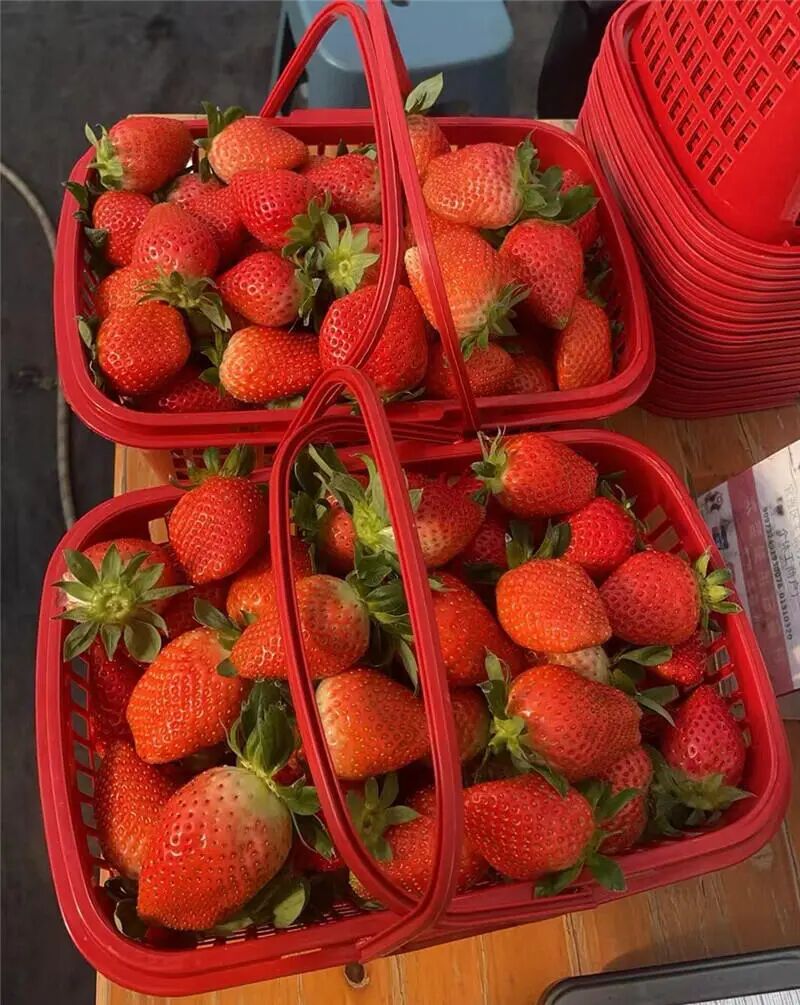 這里的草莓品質(zhì)極佳,不僅個(gè)頭大、色澤艷、飽滿度高,而且口感香甜,深受消費(fèi)者喜愛,價(jià)格和去年一樣,50元/公斤,可以入園采摘,無入園費(fèi)?!拔覀兊牟葺淮蜣r(nóng)藥,采用生物防蟲,施的都是農(nóng)家肥,以羊糞為主,所以品質(zhì)很好。以老客戶居多,每年都是供不應(yīng)求,還有外地的,像北京的客戶都來找我們買,挑七八成熟的發(fā)貨就好了?!鞭r(nóng)場負(fù)責(zé)人楊云清介紹。