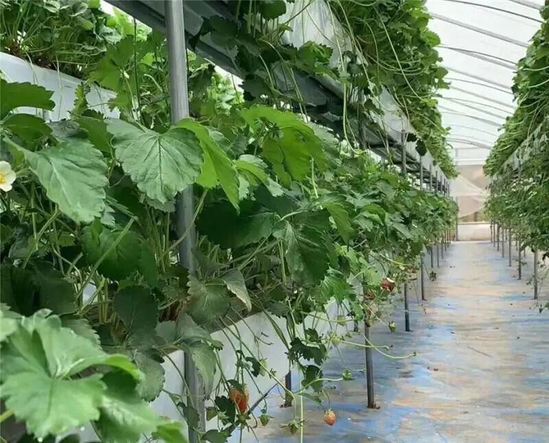 一壟壟草莓蔥翠欲滴、長勢喜人