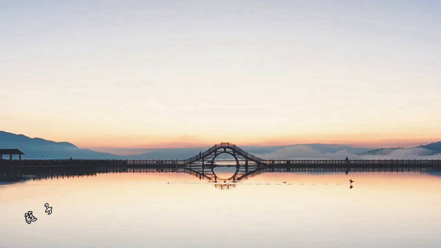 湖光吞曉日,風軟漾金波?!?石屏異龍湖日出.