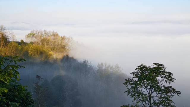 中午時分,云海漸漸散去,露出青翠的茶林與錯落的村寨。而那份動人心魄的美,卻久久縈繞在我心頭,揮之不去。