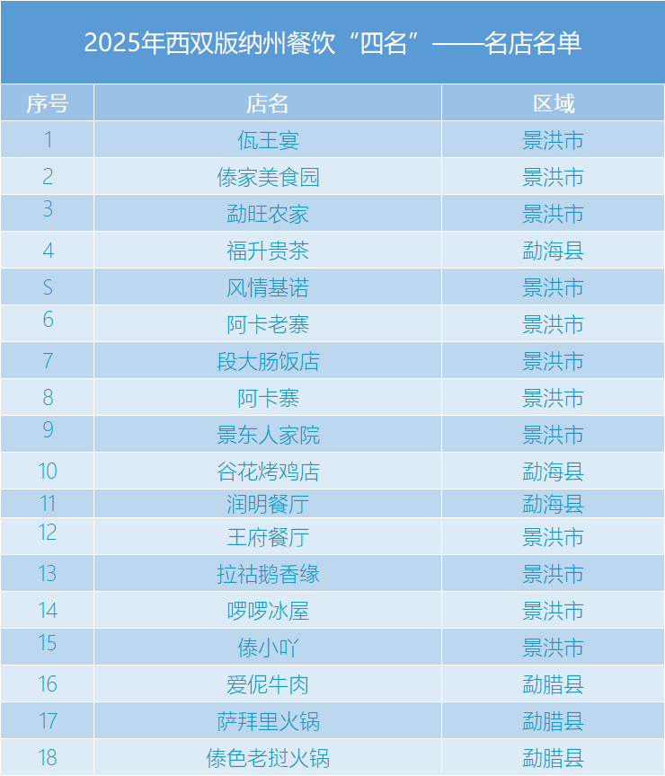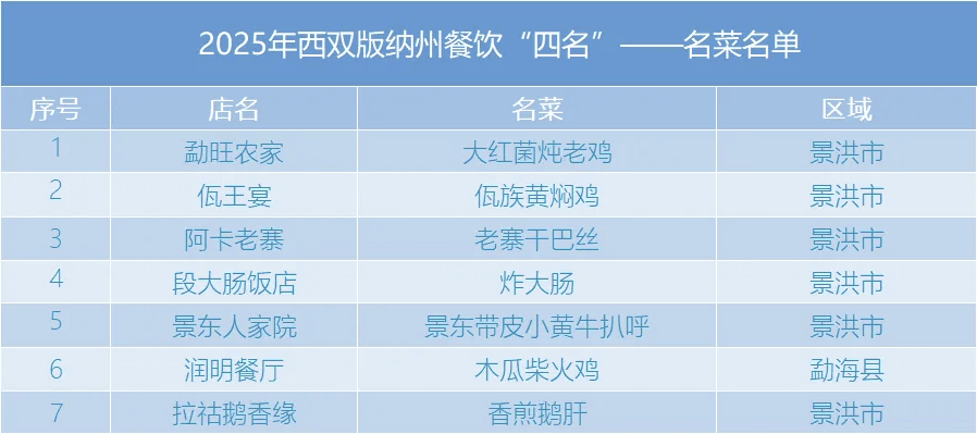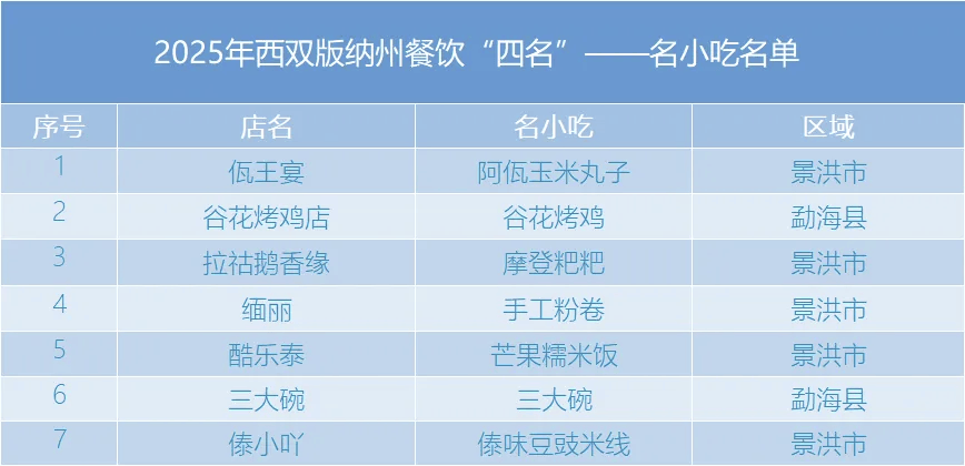 活動公布了2025年度西雙版納州餐飲“四名”(名店、名師、名菜、名小吃)評選結(jié)果。評選活動自今年8月啟動以來,嚴(yán)格遵循“政府引導(dǎo)、企業(yè)主體、公平公正”的原則,歷經(jīng)企業(yè)申報、縣級推薦、大眾投票、專家評審、結(jié)果公示等環(huán)節(jié),最終評選出名店18家、名師7名、名菜7道、名小吃7款,集中展現(xiàn)了西雙版納餐飲行業(yè)的特色風(fēng)貌與文化底蘊(yùn)。