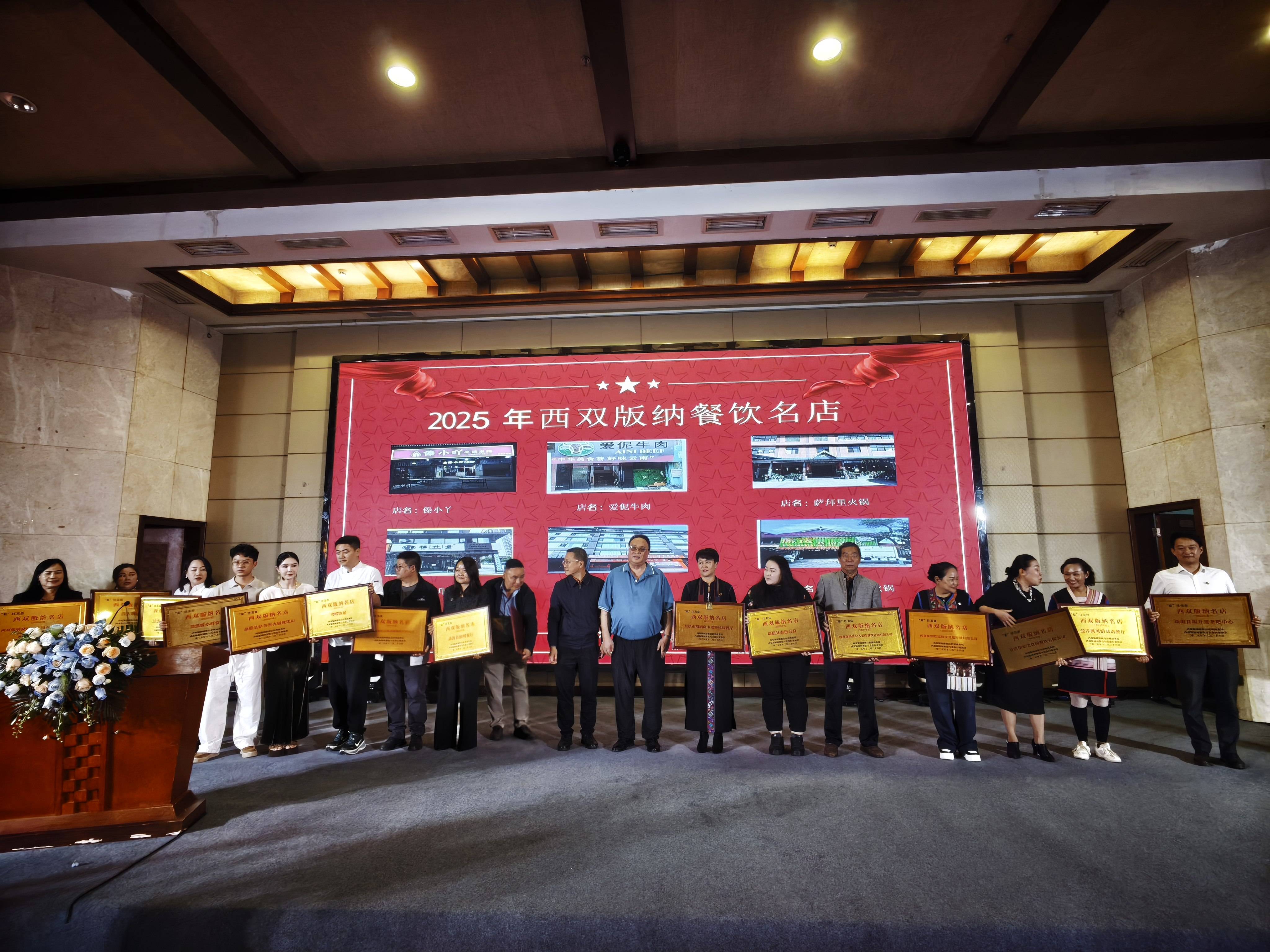 頒獎大會上,佤王宴、勐海谷花烤雞、王府餐廳、阿卡老寨、風(fēng)情基諾、勐旺農(nóng)家等餐廳獲得了2025年餐飲名店的榮譽(yù)。