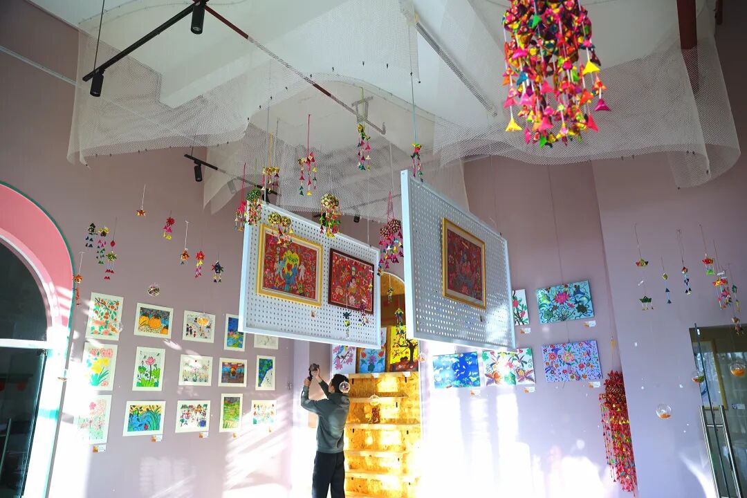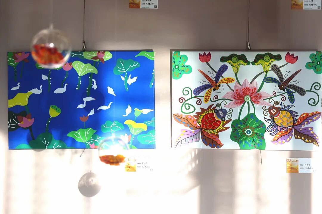 菱角作品與呈貢農(nóng)民畫(huà)交相輝映。高吳雙 攝