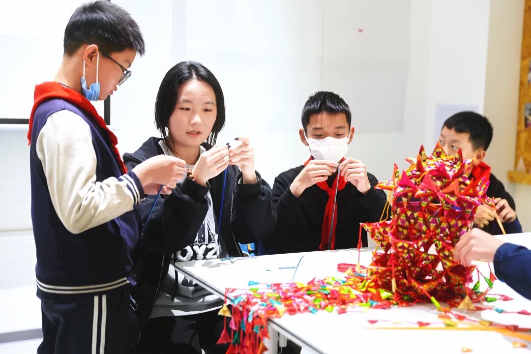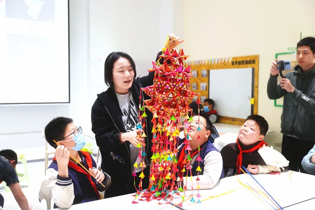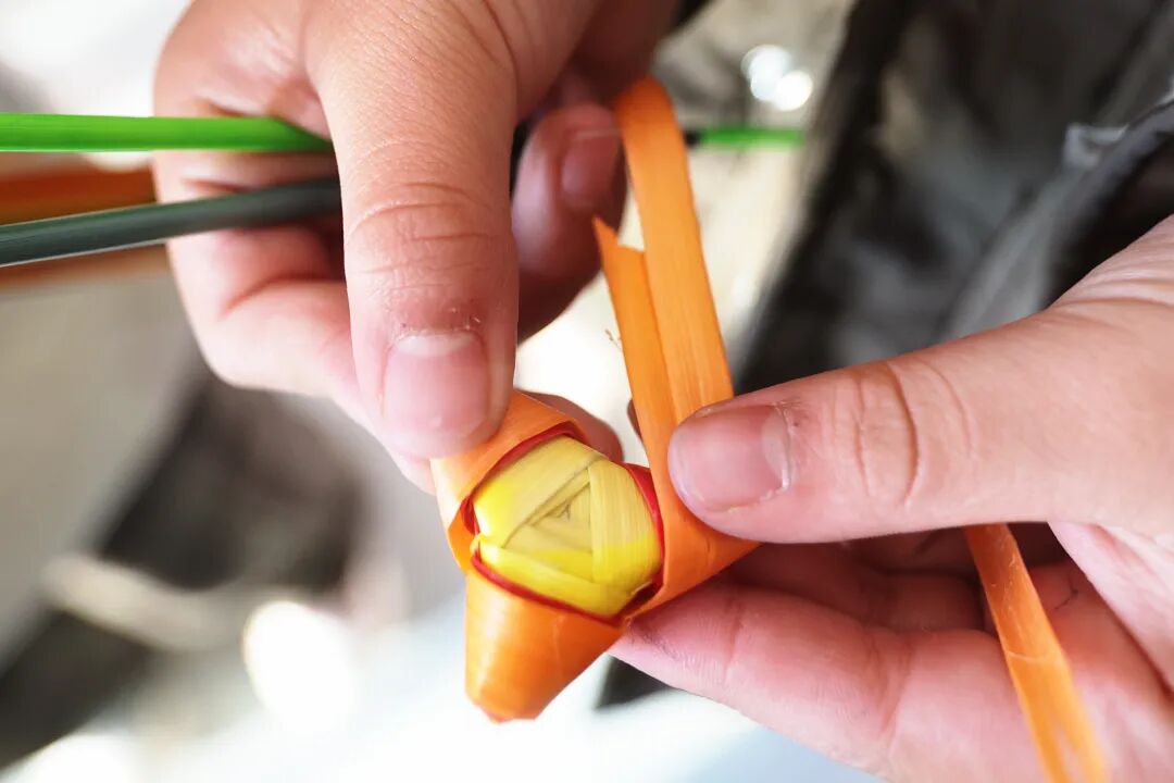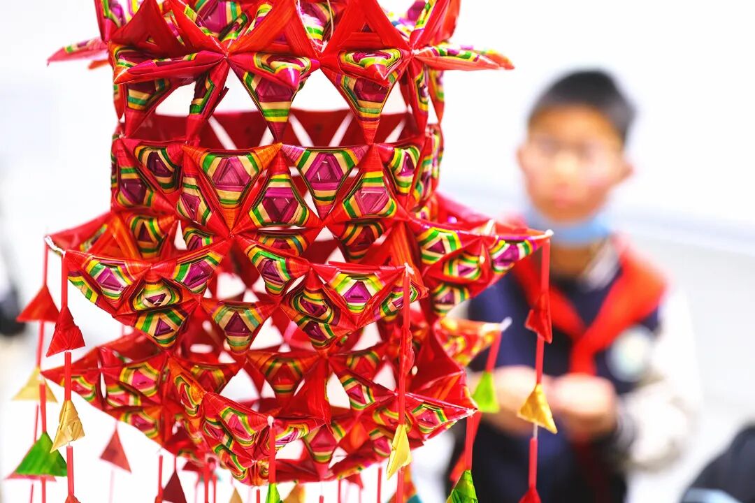 呈貢區(qū)基礎(chǔ)教育科學(xué)研究院附屬學(xué)校的學(xué)生編編制的菱角。高吳雙 攝