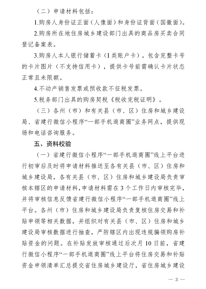 購房人本人通過省建行微信小程序“一部手機(jī)逛商圈”線上平臺(tái),填寫購房人身份信息,并上傳購房人身份證正面及反面照片、《商品房買賣合同登記備案表》、不動(dòng)產(chǎn)銷售發(fā)票,進(jìn)行彩云住房消費(fèi)券申領(lǐng)。