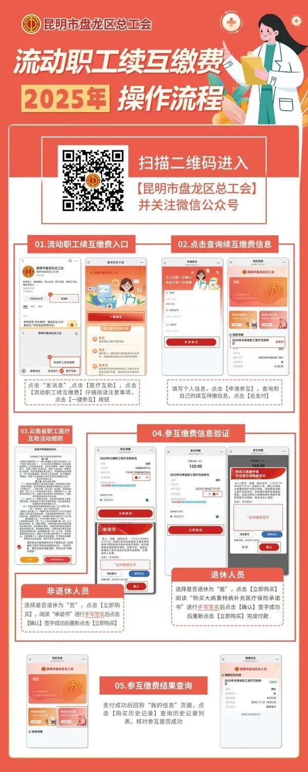 針對靈活就業(yè)職工以往參互需線下繳費、流程煩瑣耗時的問題,區(qū)總工會率先探索數(shù)字化服務(wù)新模式,創(chuàng)新開通醫(yī)療互助線上收費系統(tǒng),實現(xiàn)從“線下集中辦理”到“線上自主操作”的升級。職工只需關(guān)注“盤龍區(qū)總工會”公眾號,進入“醫(yī)療互助”板塊,按提示輸入個人信息,即可完成線上繳費、信息查詢、繳費憑證查詢等操作,真正實現(xiàn)“足不出戶即可參互”。