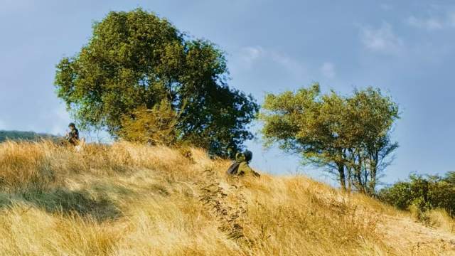 遠(yuǎn)處的山巒連綿起伏,與藍(lán)天相接,像是大自然精心勾勒的輪廓線。山間點(diǎn)綴著幾株孤樹,它們姿態(tài)各異,有的挺拔如戰(zhàn)士,傲然屹立;有的彎曲似舞者,舒展著婀娜的身姿。 白云悠悠地在藍(lán)天中飄蕩,時(shí)而聚攏,時(shí)而散開,為這湛藍(lán)的天空增添了幾分靈動(dòng)與詩(shī)意。陽(yáng)光慷慨地灑下,為草原披上了一層金色的薄紗,一切都顯得那么和諧而美好。