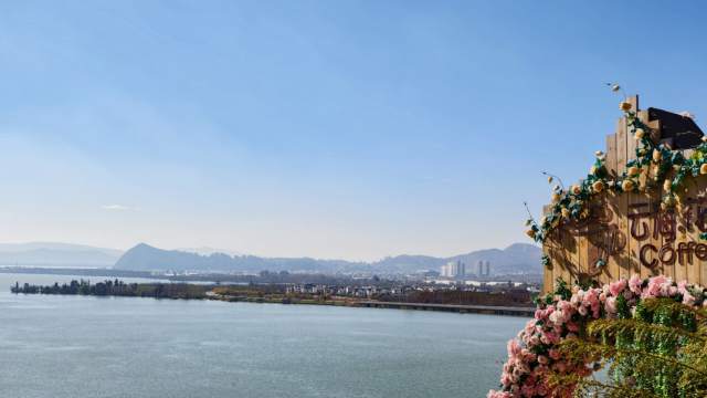 滇池西岸晉寧云?;ㄌ?,踞半山一攬滇池美景。昔日石漠荒山,今成四季芳甸,春有金浪搖風(fēng),夏擁繡球疊云,秋漫格桑似霞,冬凝羽衣含翠。花徑蜿蜒,棧道臨波,朝觀薄霧漫川,暮賞滇池落日,滿眼皆是南滇池的湖光花影。