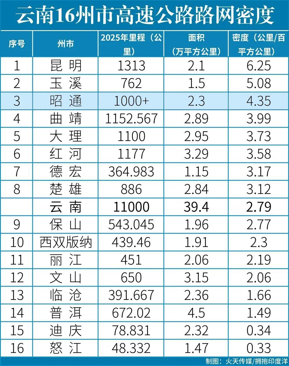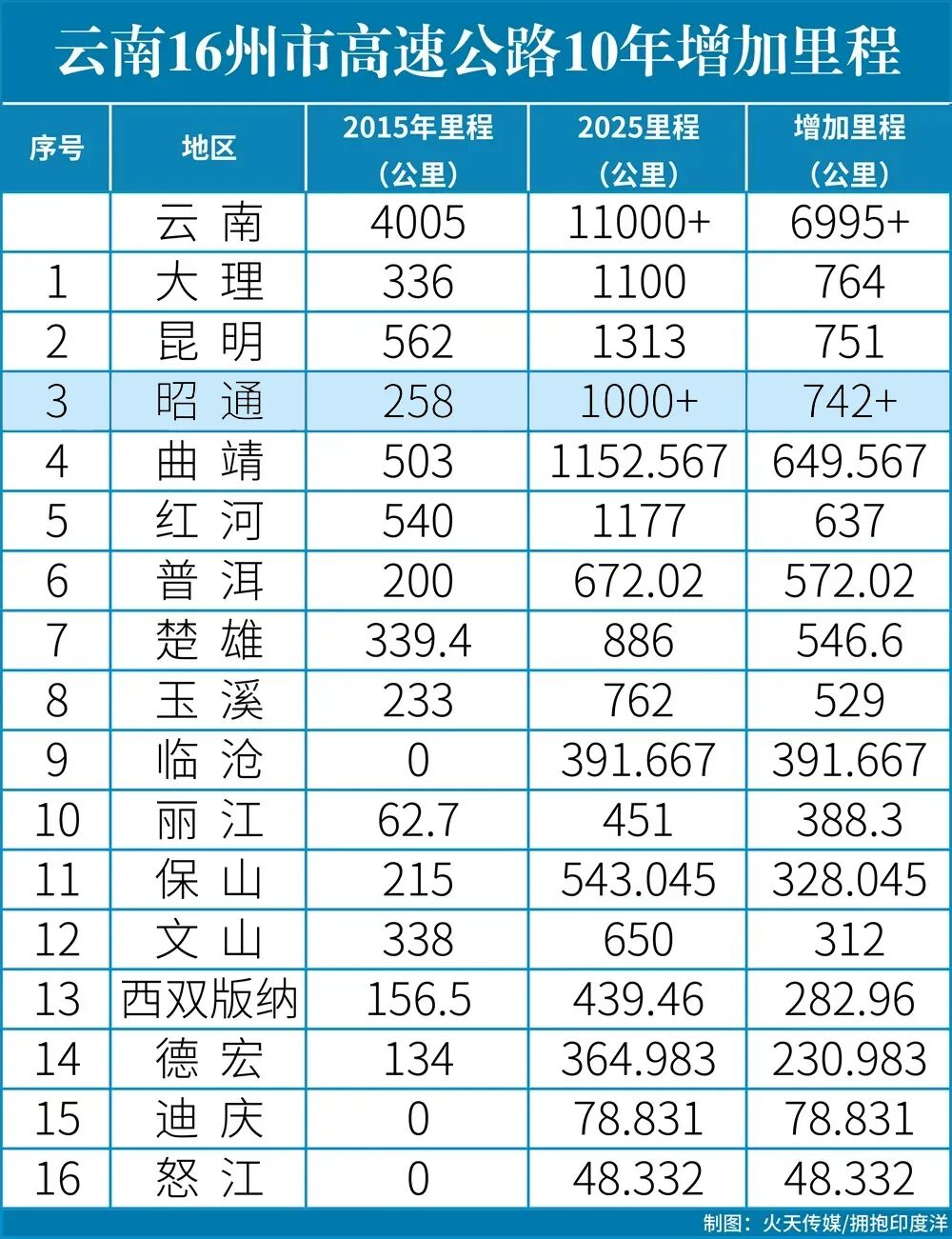 2025年,昭通地區(qū)生產(chǎn)總值實現(xiàn)2103.4億元,躍居全省第五,取代楚雄,成為云南前五的唯一非滇中城市。在昭通市統(tǒng)計局發(fā)布的2024年1-12月經(jīng)濟運行分析中就曾提到,“隨著三大電站、易地扶貧搬遷和高速公路進入掃尾,房地產(chǎn)投資持續(xù)下滑,全市投資實物量逐步減少,支撐嚴重不足,要繼續(xù)保持穩(wěn)定增長將十分困難。”但這次挺進前五,意料之外,卻是情理之中。昭通,從一開始就是“潛力股”。在云南提出的“滇中崛起、沿邊開放、滇東北開發(fā)、滇西一體化”空間布局發(fā)展思路中,行政意義上的滇東北,即是昭通。作為一個獨立的地理單元予以規(guī)劃,在全省區(qū)域協(xié)調(diào)發(fā)展的宏大棋局中并不多見,足見其分量之重、期望之切、潛能之巨。從地圖上看,昭通地處滇川黔交界、長江經(jīng)濟帶上游和緊鄰成渝地區(qū)雙城經(jīng)濟圈、陸海新通道,堪稱“左手牽著大西南,右手挽著長三角”。從南北維度來看,昭通更是貫通內(nèi)外的“大動脈”,是內(nèi)地通往南亞東南亞和云南通往內(nèi)地的雙向大走廊的關鍵節(jié)點。昭通發(fā)展的關鍵是什么?在很多人看來,一定是交通。這兩年,靠著日益完善的路網(wǎng),在昭通種天麻的朋友,把銷售版圖擴展到全省各地,遠在廣東的親戚也打電話來,讓代購幾公斤天麻去燉雞。年底粗略一算,一家人靠種天麻掙了二三十萬。在文旅方面,2025年暑期到昭避暑游客首次突破1000萬人次,昭通躋身全省第四大旅居目的地,成為全國避暑熱度上漲最快的城市,交通便捷功不可沒。昭通近兩屆市委書記,郭大進和蘇永忠,均有豐富的交通部門履職經(jīng)歷。如今,郭大進已是云南分管交通領域的副省長。其實,兩千年前,秦始皇就已經(jīng)關注昭通,為經(jīng)略西南,命常頞開鑿五尺道,連通朱提與中原,成為西南邊疆最早的國家級“高速公路”,將朱提納入中原文明的版圖。但硬性條件一直制約著昭通,這里位于烏蒙山區(qū)腹地,境內(nèi)大山、大水和大峽谷縱深,堪稱“地質(zhì)博物館”。交通基礎設施欠賬大、水平低、層次低、供給總量不足,曾一度成為昭通經(jīng)濟發(fā)展的瓶頸。反過來看,經(jīng)濟跟不上,“窮市辦大交通”,更是難上加難。五嶺逶迤騰細浪,烏蒙磅礴走泥丸。昭通將“交通強市”頂格規(guī)劃,將規(guī)劃新建的高速公路項目劃分為國高項目、社會資本參與的PPP項目、自建項目等“7大類別”,“一路一策”,采取多種籌融資方式,通過市場化運作籌措資金1400多億元。昭通人憑著不服輸?shù)木?,把修路這件事做到了極致。過去十年間,昭通累計完成綜合交通投資2653億元,打通11個出滇、入川、進黔高速大通道,農(nóng)村公路通車里程全省第一。至2024年10月,大永高速開通,昭通實現(xiàn)“縣縣通高速”,市內(nèi)“2小時交通圈”和川、滇、黔三省周邊城市“4小時公路交通圈”基本形成,通車里程突破1000公里。按2.3萬平方公里的國土面積計算,其高速公路路網(wǎng)密度(每百平方公里擁有的高速公路公里數(shù))已達到4.35,位居全省第三。已相對接近長三角地區(qū)平均水平(4.82公里/百平方公里)。昭通新機場定位為引領川、滇、黔區(qū)域發(fā)展的中心交通樞紐,年旅客吞吐量225萬,年貨運吞吐量2700噸,將于今年正式轉(zhuǎn)場運營。再看有“萬里長江第一港”之稱的水富港,自2020年擴能工程開港運行以來,貨物吞吐量從30多萬噸增加到2025年的1178萬噸,3000噸級船舶可常年通航、通江達海,進入長江上游千萬噸級樞紐港口行列。目前,水富港已開通至重慶、武漢、九江等多條航線,實現(xiàn)公鐵水“多式聯(lián)運”、吞吐量跨入千萬噸級樞紐行列;云南正在不斷改善金沙江航道,構(gòu)建“云南腹地—水富港—長江中下游”等多條聯(lián)運網(wǎng)絡。在鐵路方面,成貴高鐵建成運營,敘畢鐵路接入西部陸海新通道,渝昆高鐵將于2026年全線通車,這也是云南首條時速350公里的高速鐵路。目前渝昆高鐵云南境內(nèi)53座隧道僅剩昭通隧道還未貫通,這也是全線通車的控制性工程。昭通隧道由中鐵隧道局集團有限公司承建,全長16.26公里,穿越18套地層與2條斷裂帶。據(jù)說這條隧道的橫洞和斜井輔助工程總長度,竟然超過了正洞長度,可見其難度。還有一條規(guī)劃中的宜西高鐵(宜賓至西昌),也在牽動昭通人的心。這條路原本是按普速鐵路規(guī)劃,但如今四川正力爭將其升級為時速350公里的高速鐵路,于西昌市西昌西站銜接規(guī)劃西攀高鐵后貫通大麗攀鐵路。根據(jù)昭通市交通運輸局在2025年9月公開的提案答復函顯示,宜賓正在積極爭取項目線路走向采用不經(jīng)過昭通水富及綏江的北線方案。這個方案意味著鐵路將從宜賓東站引出后,向西途經(jīng)宜賓及涼山幾個縣,最終到達西昌市。樂山也提出希望線路能夠經(jīng)過其沐川、馬邊兩地。面對變數(shù),昭通方面明確表示要全力爭取項目最終線路方案采用經(jīng)過水富、綏江并設站的南線方案。這場博弈最終結(jié)局如何,還有待觀望。如果宜西高鐵能夠經(jīng)過昭通,加上即將通車的渝昆高鐵,那么昭通也將邁進“高鐵樞紐”行列,其重要意義不言而喻。昭通目前有內(nèi)六鐵路、敘畢鐵路、成貴高鐵過境并設站,但是以上鐵路全部歸屬成都局管理,而不是歸昆明局管理。這是因為這些