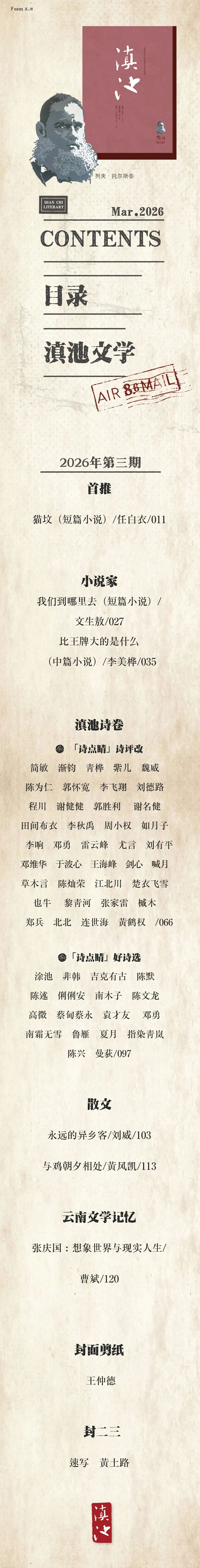 目錄 | 《滇池》文學(xué)2026年第3期