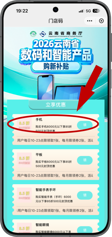 領(lǐng)取用于購買手機、平板