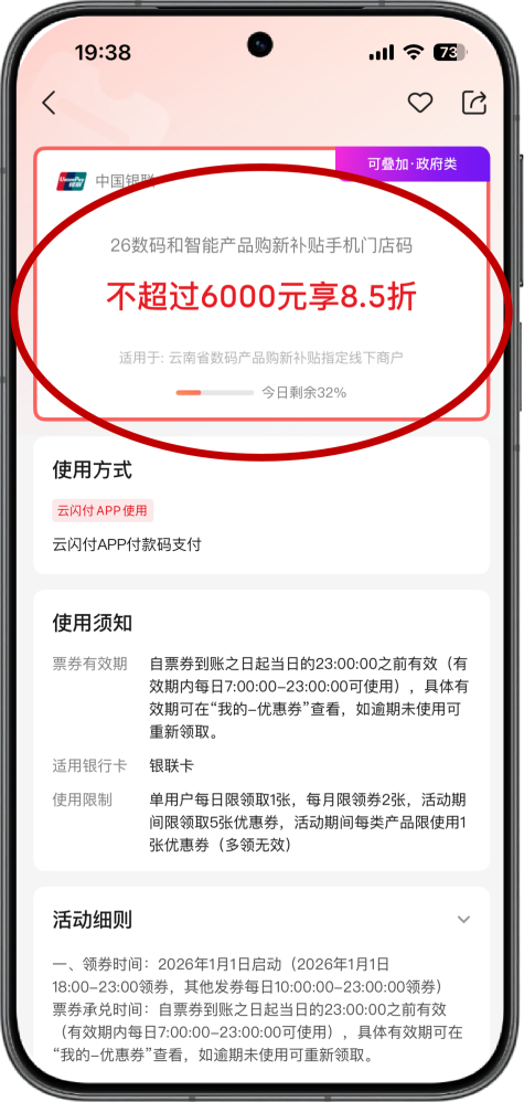 使用范圍:僅在云南省內(nèi)指定農(nóng)村地區(qū)線下實體門店使用,具體門店名單請留意官方公示。