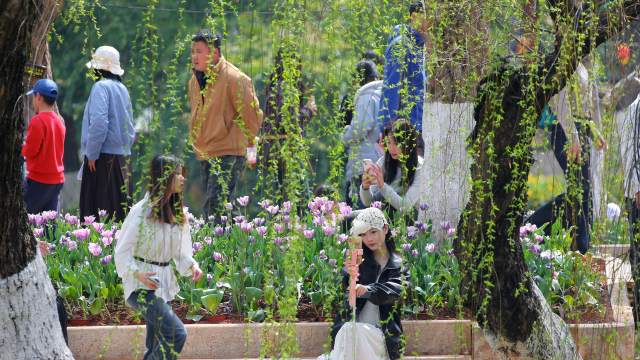 ????昆明的春天總是來得更早一些,翠湖的柳梢便是春天的第一抹綠。一夜東風(fēng),催醒了堤岸的垂柳,嫩黃的新芽,綴滿柔韌的枝椏,如千萬條絲絳垂落,輕拂水面,攪碎一湖澄澈。碧水含情,映著遠(yuǎn)天的藍(lán)與岸邊的花,這便是“柔絲拂岸弄輕煙,碧水含情映碧天”的真意。湖畔郁金香競相盛放,紅似火、白如雪、紫如霞。花影搖曳,柳絲輕揚(yáng),春意便在這紅綠相間里鋪展開來。游人如織,笑語盈盈,與春光正撞個(gè)滿懷。最是東風(fēng)解意,送流年,也送暖。柳枝依依,是春城最溫柔的筆觸,繪就了這一方湖光春色,也藏好了歲月靜好的模樣。