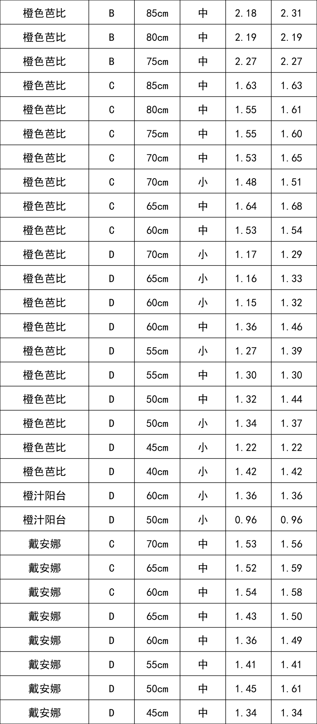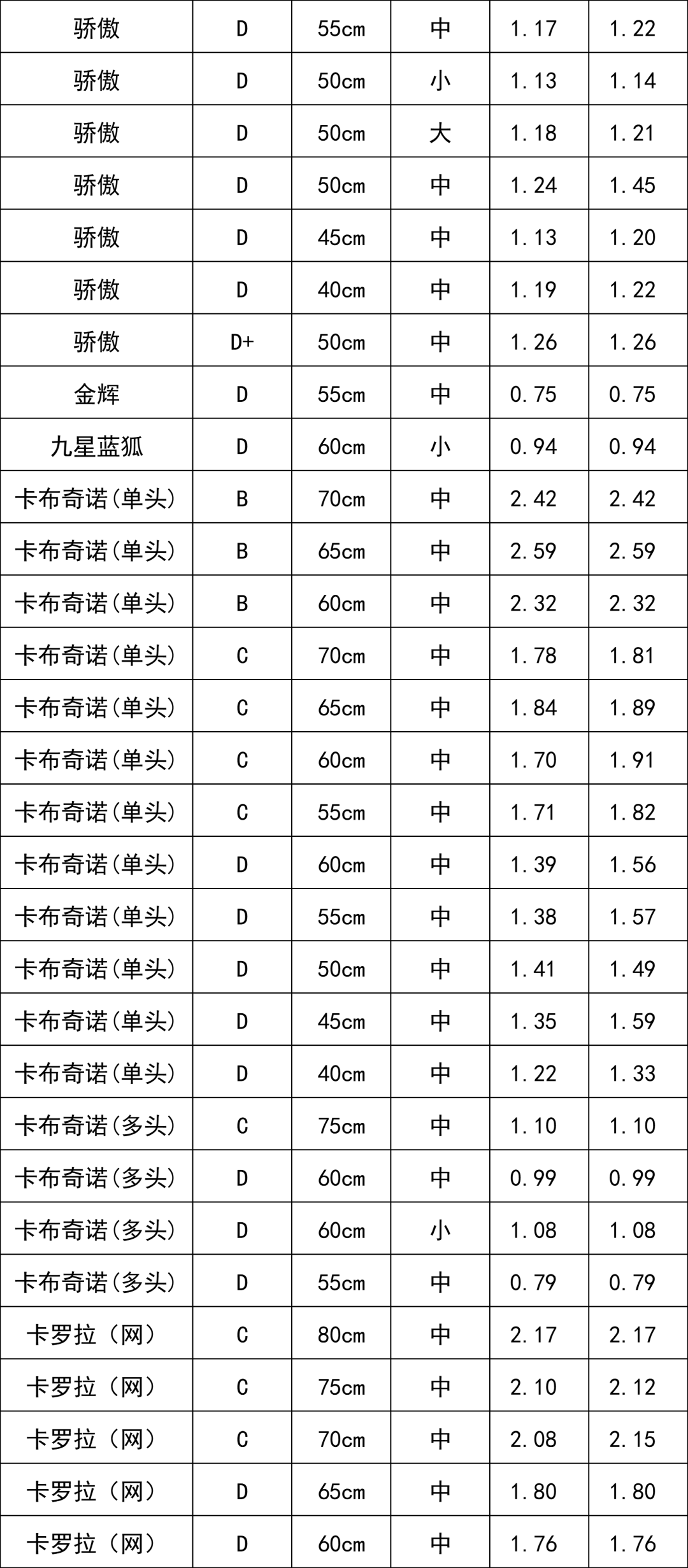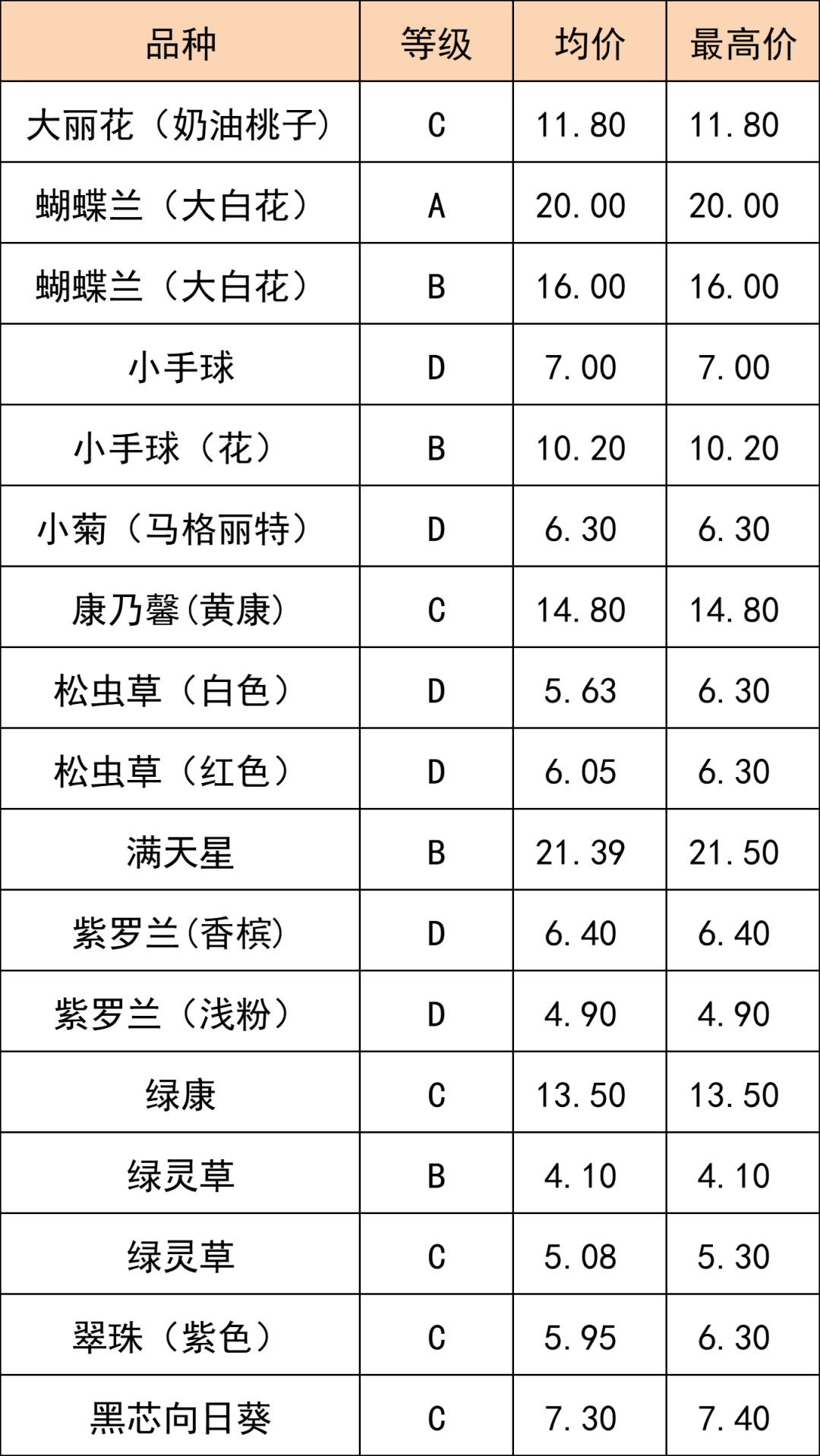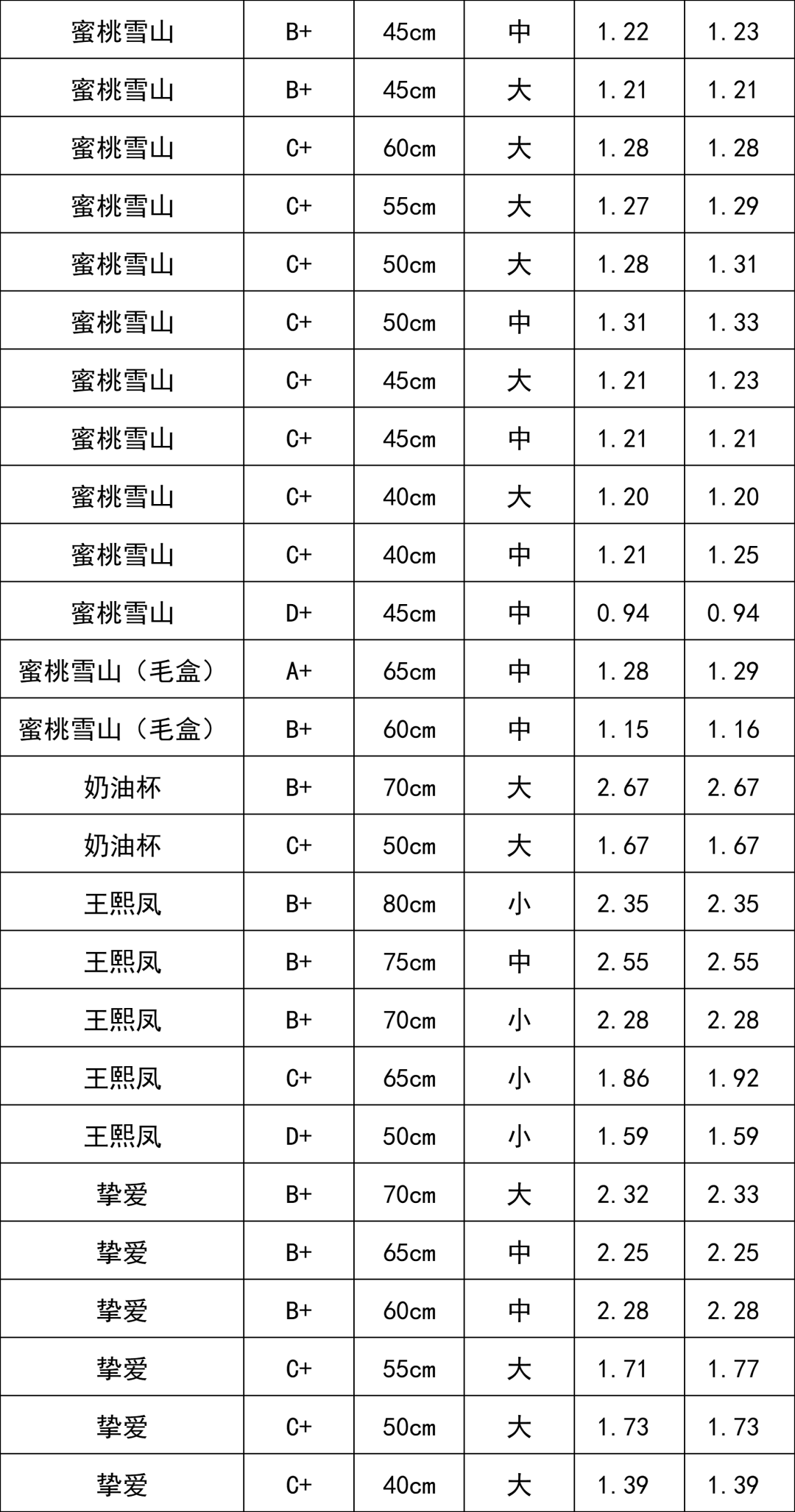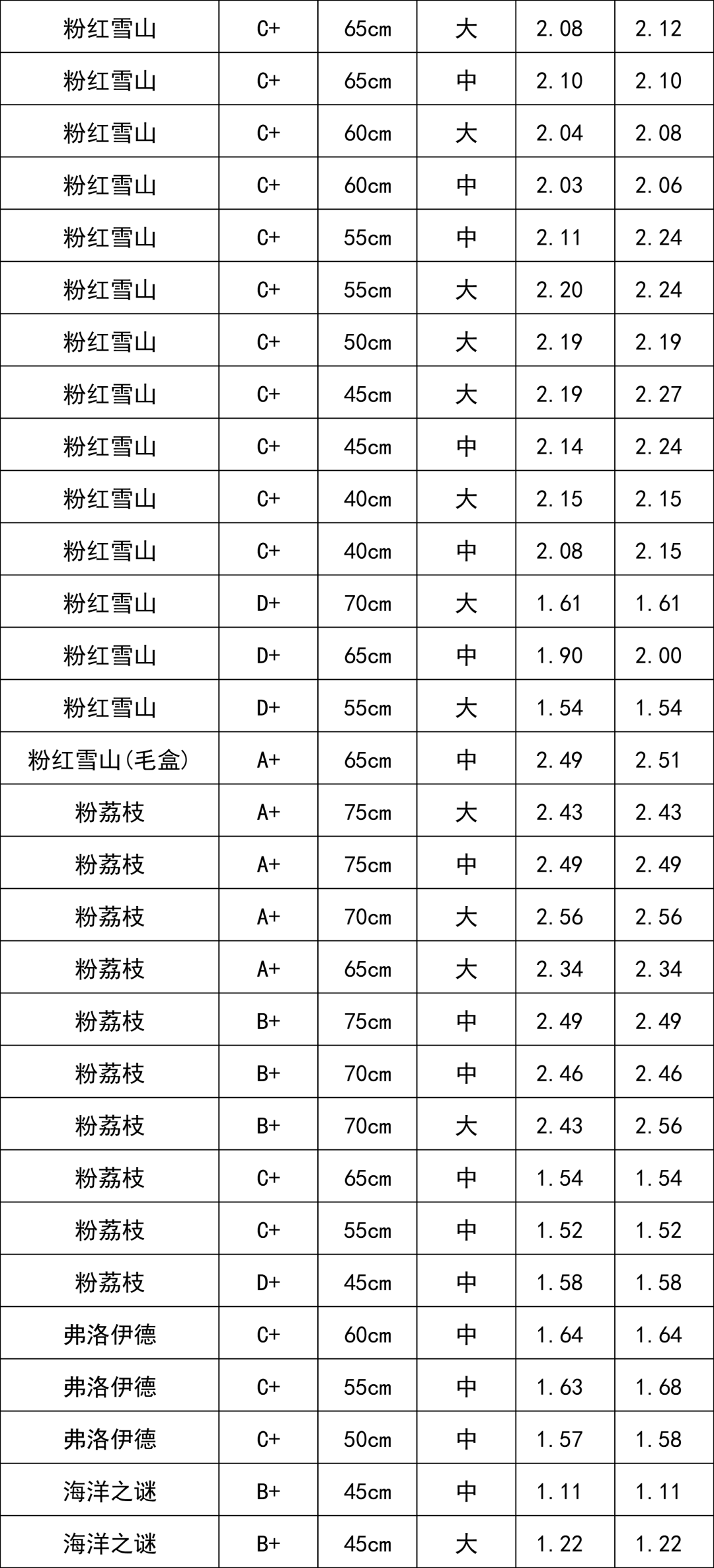 交易級(jí)別(單頭) | 交易均價(jià) (元/枝) |
