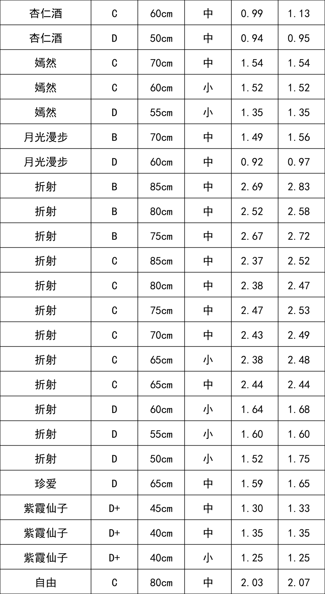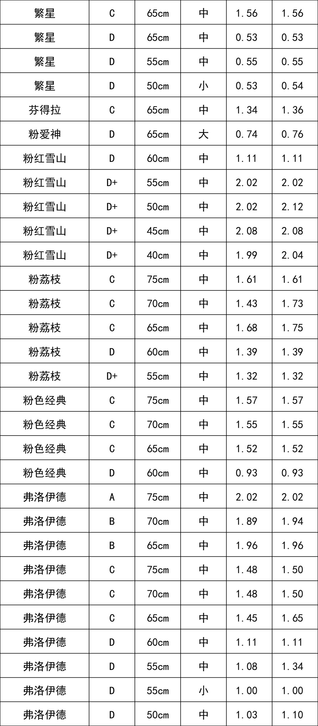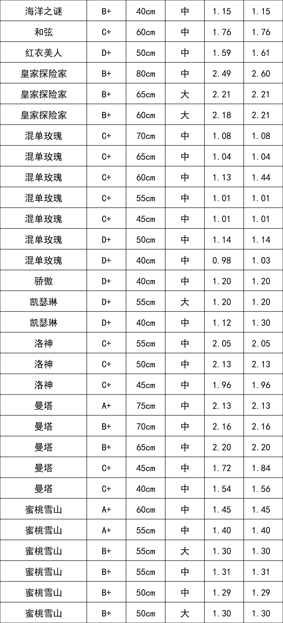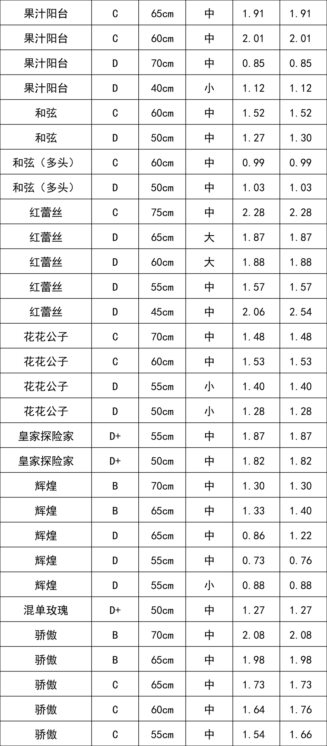 C級(jí)玫瑰 | 1.68 |