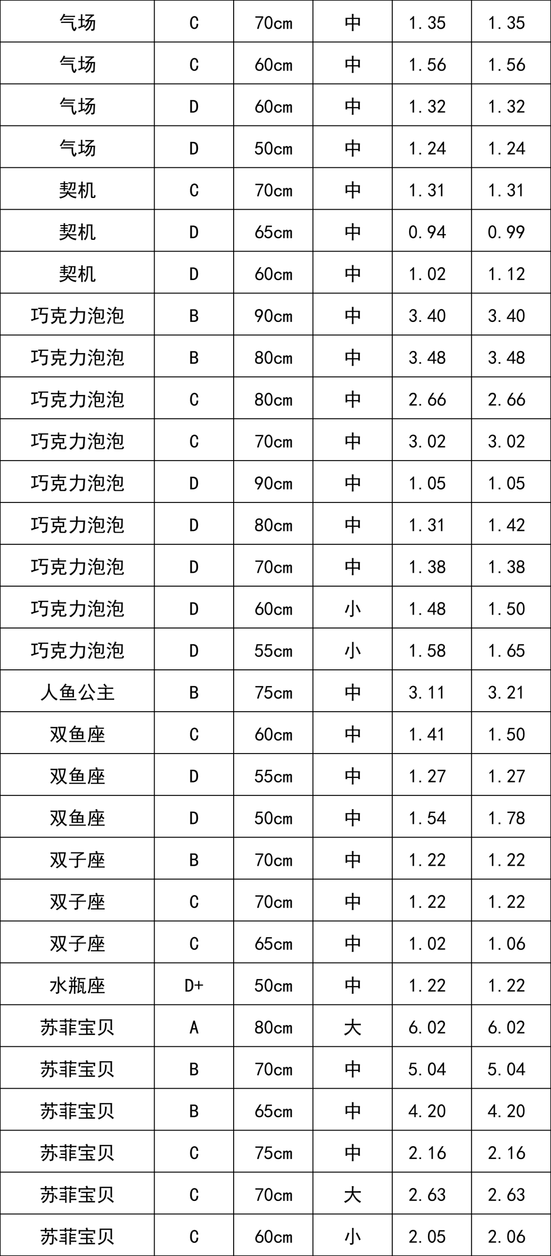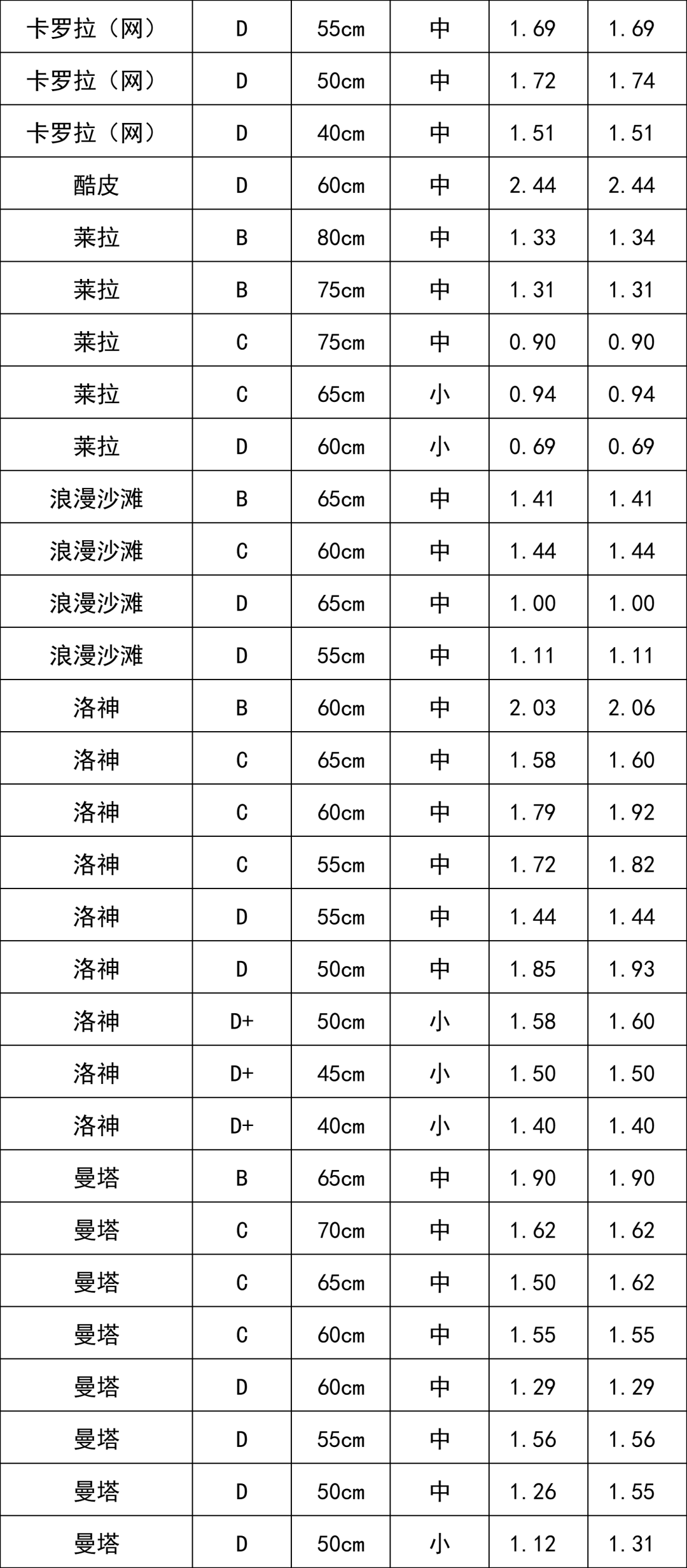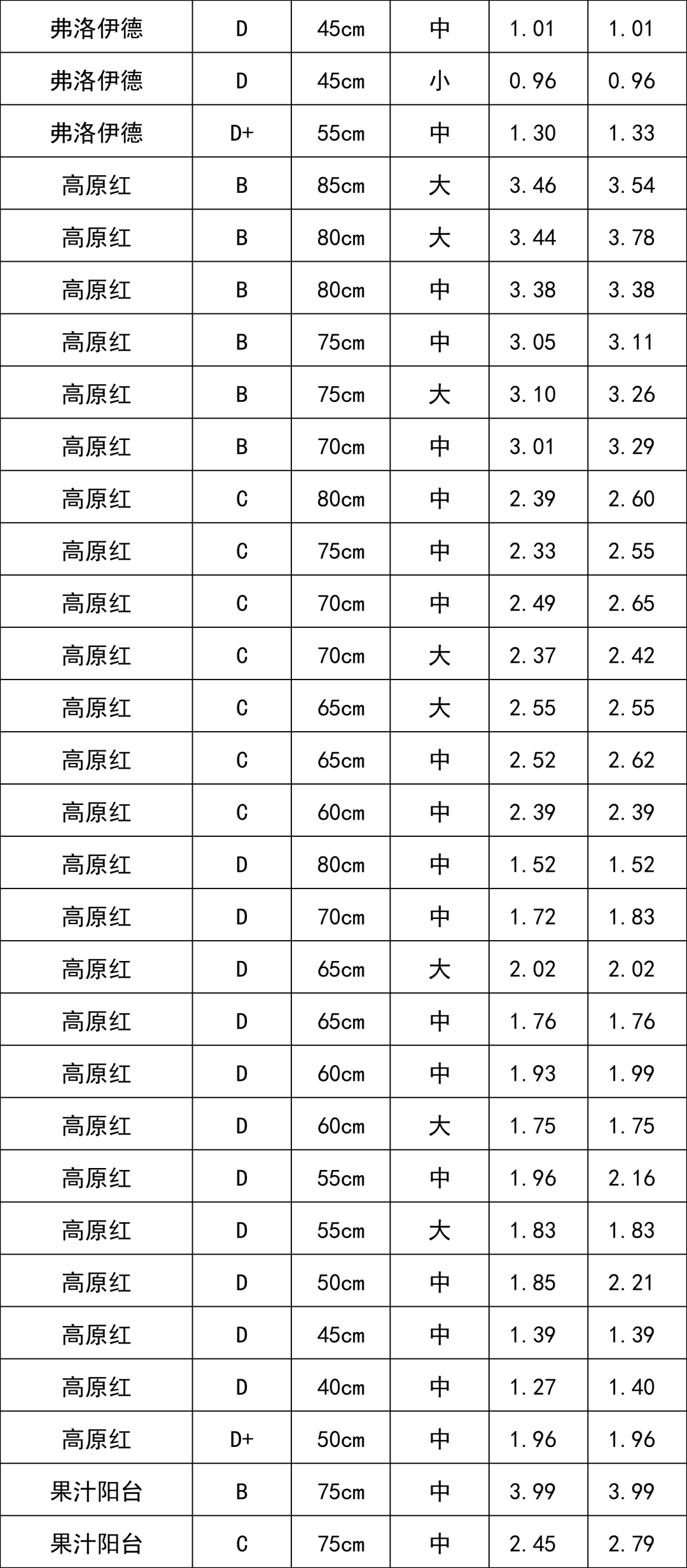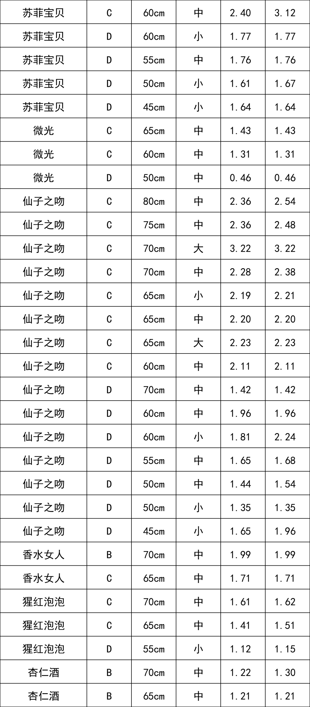 C級(jí)玫瑰 | 1.68 |