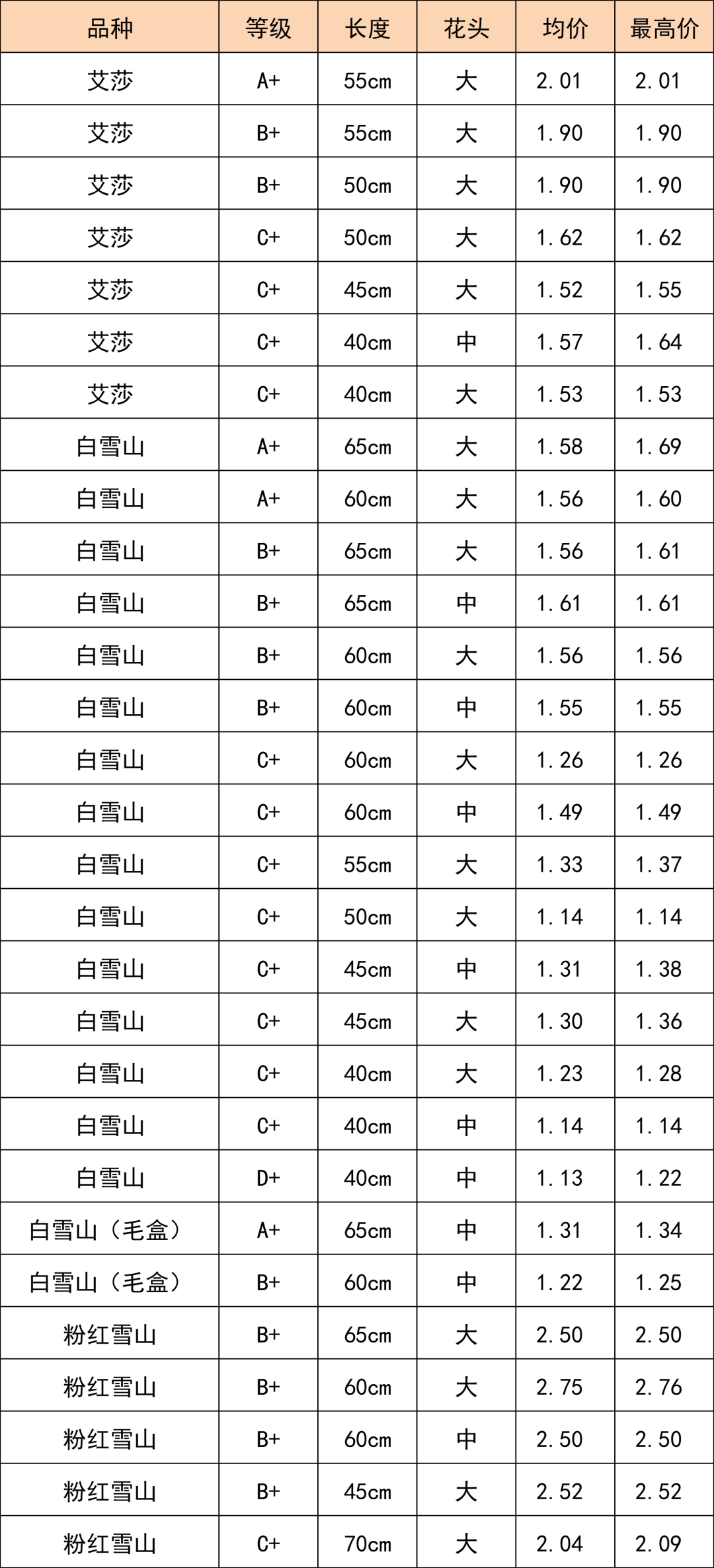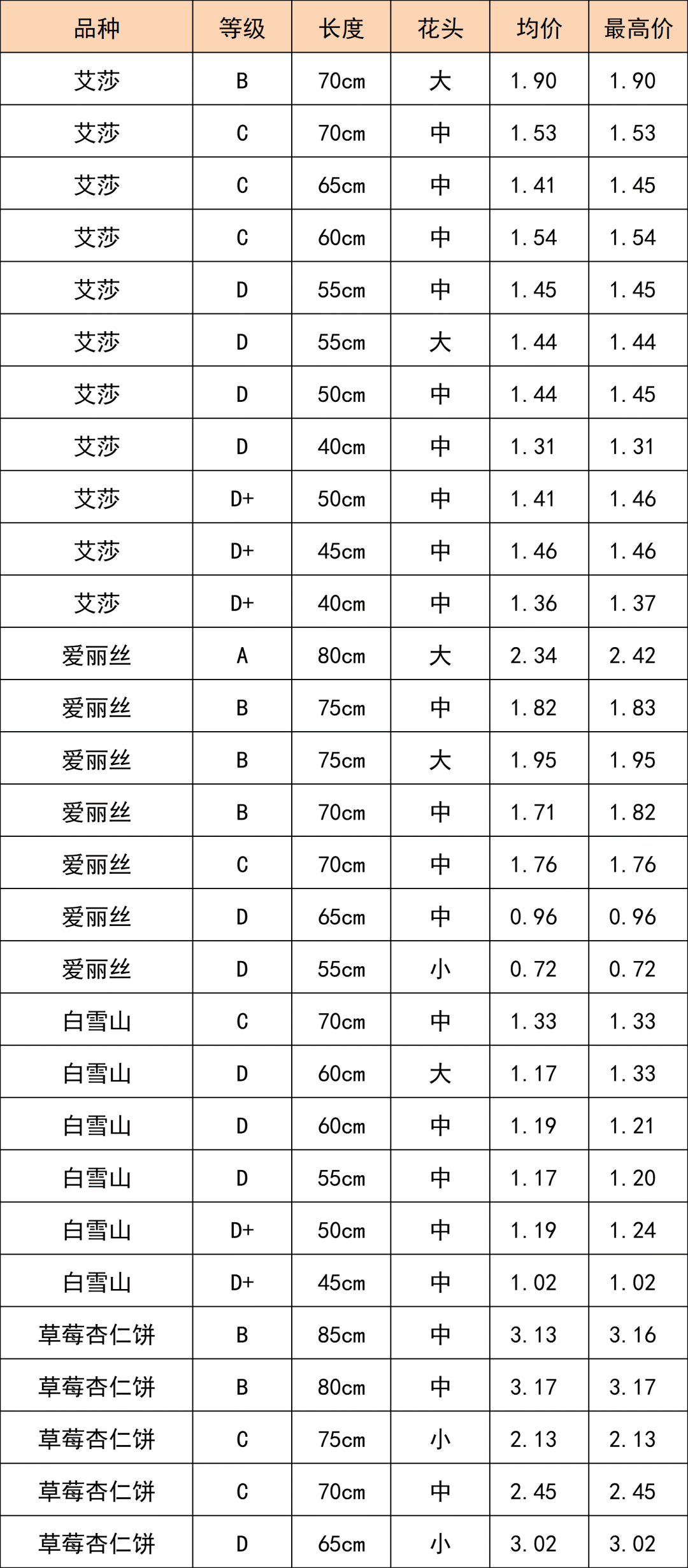 總體均價(jià)1.60/枝