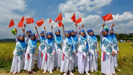 尋甸各族人民揮動(dòng)國旗同唱我和我的祖國