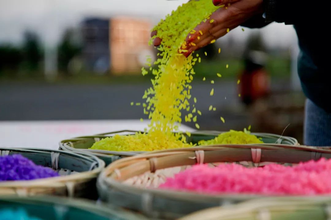 婦女則負(fù)責(zé)染花米飯,打掃衛(wèi)生,迎接潑水節(jié)