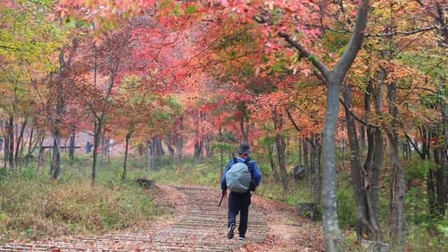 吉林蛟河紅葉谷——一個小眾的景點,美得那么自然,鮮見人工雕琢的痕跡。駕車經(jīng)過蛟河市,沿途遇到的山、水、草、木已染滿了秋色, 跟著度娘買了通票自駕進(jìn)紅葉谷景區(qū),包括紅葉谷、谷中谷、慶嶺瀑布、谷外谷。谷里的游人比我們預(yù)料的少得多,由于時間的關(guān)系,我們只去了紅葉谷。那一樹樹的深紅、艷紅、粉紅,金黃、淡黃,碧綠、淺綠,色澤紛繁,疏密有致,韻律十足。
